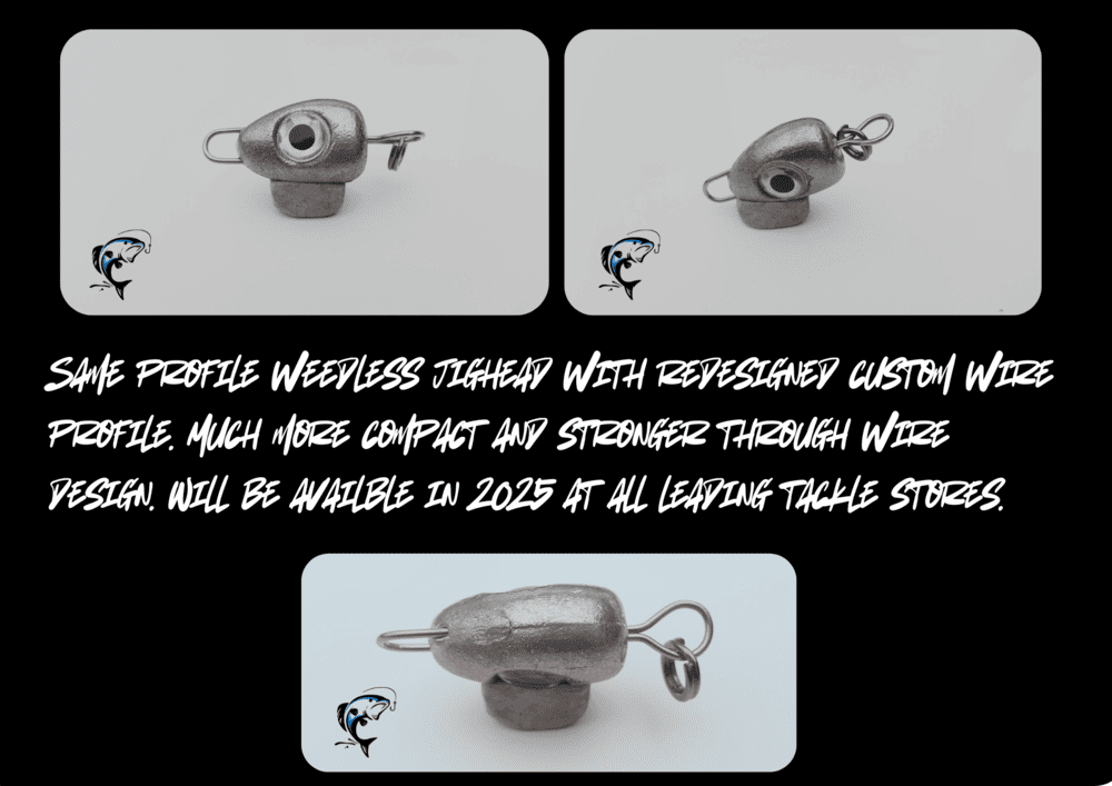 Custom designed from concept to finished CNC machined mould, making sure every jig head cast is 100% true. Custom through wire profile. Made with 316 S/S Wire and designed to handle large fish in saltwater conditions. Rig and fish these jig heads to suit your own style of fishing. Don’t be tied down with using fixed hooked jig heads.